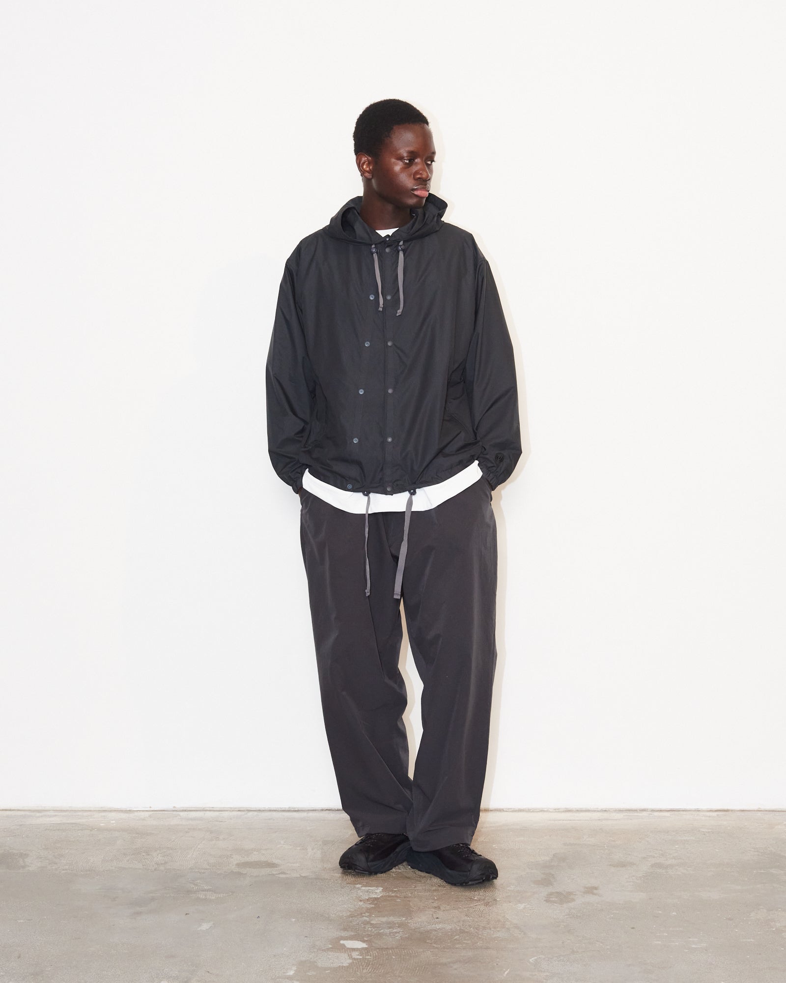 裾にはドローコード付きで、スタイリングに合わせたシルエット調整も可能。